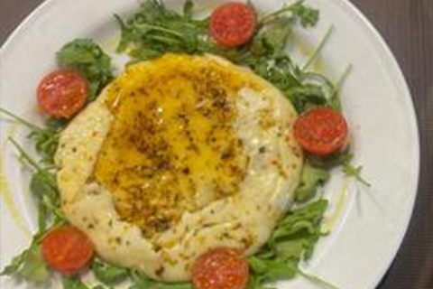 Delicioso Provolone Italiano con su base de rúcula y tomate cherry